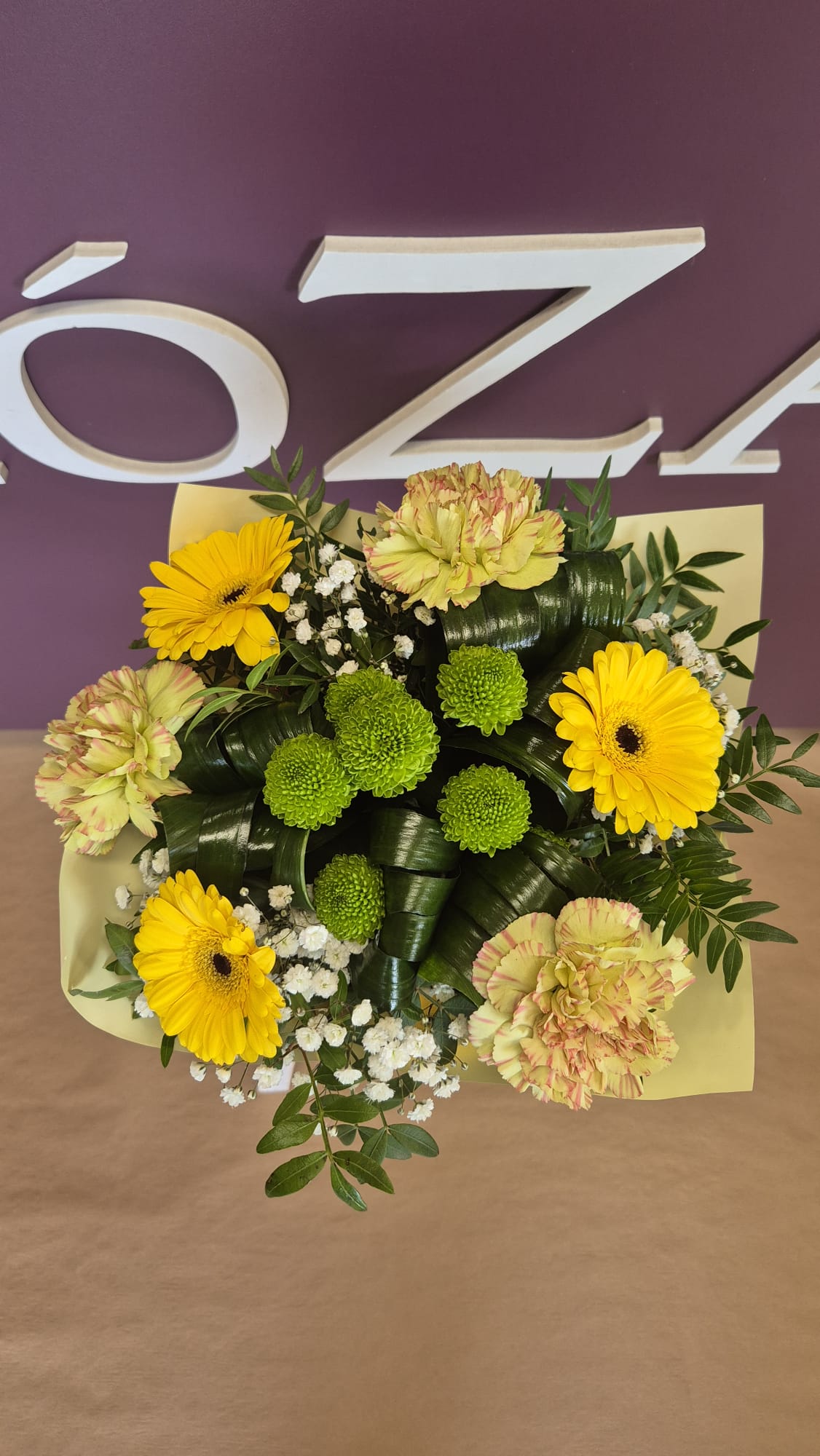 Kytice obsahuje: Germina, Karafiát, Santina, gypsa, zeleň